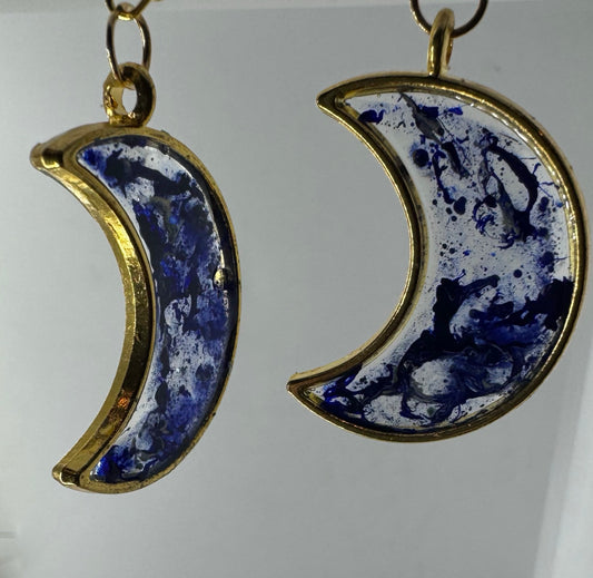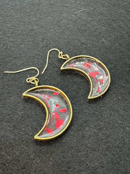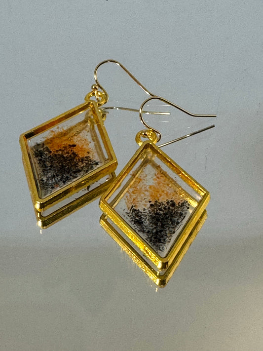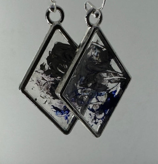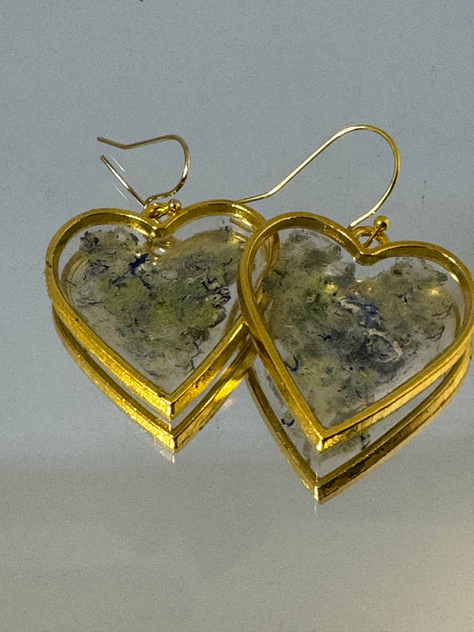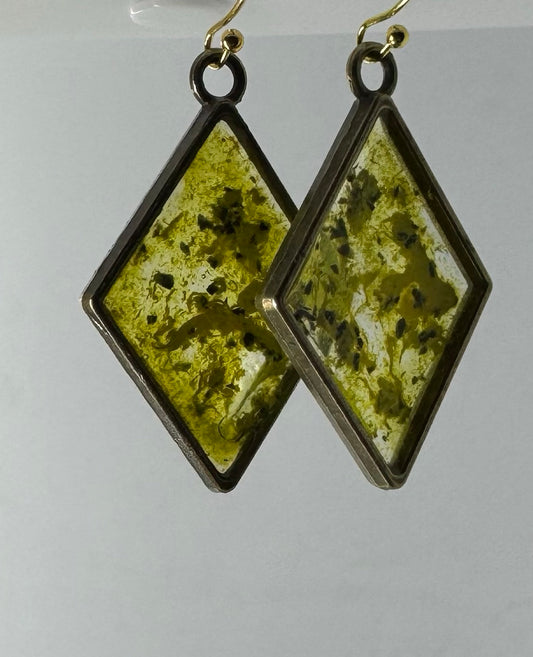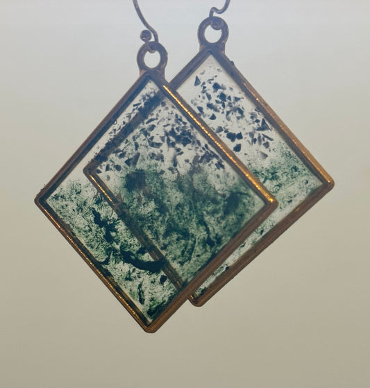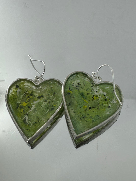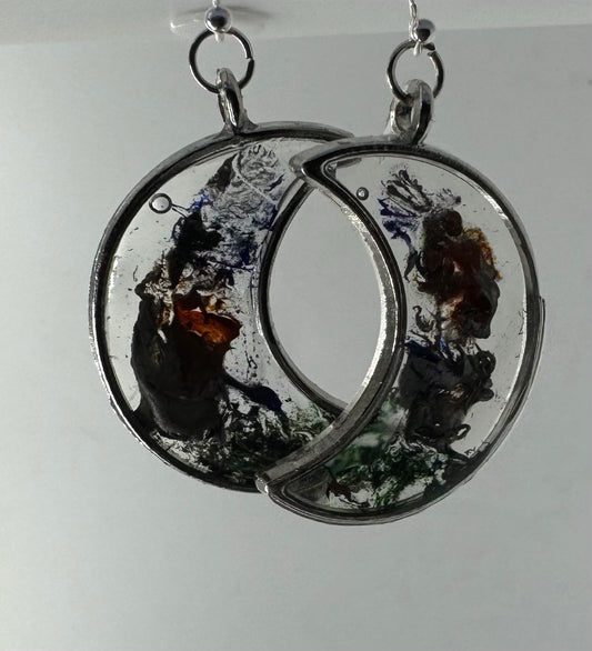 Wooden disc with resin detail drop earrings - greens, clear black & white resin