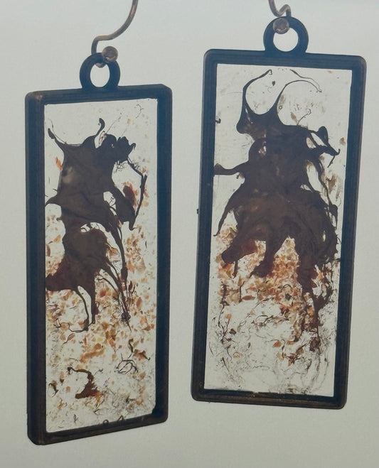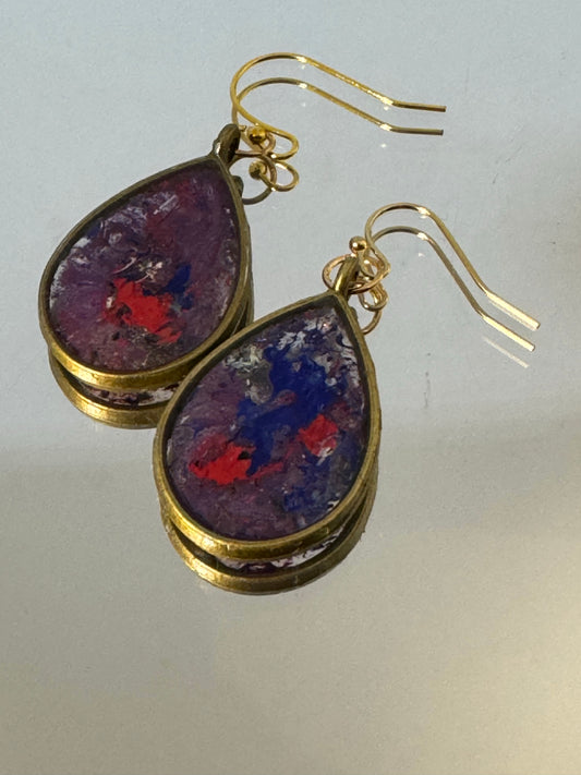 Wooden disc with multi-coloured resin detail short or medium drop, drop earrings